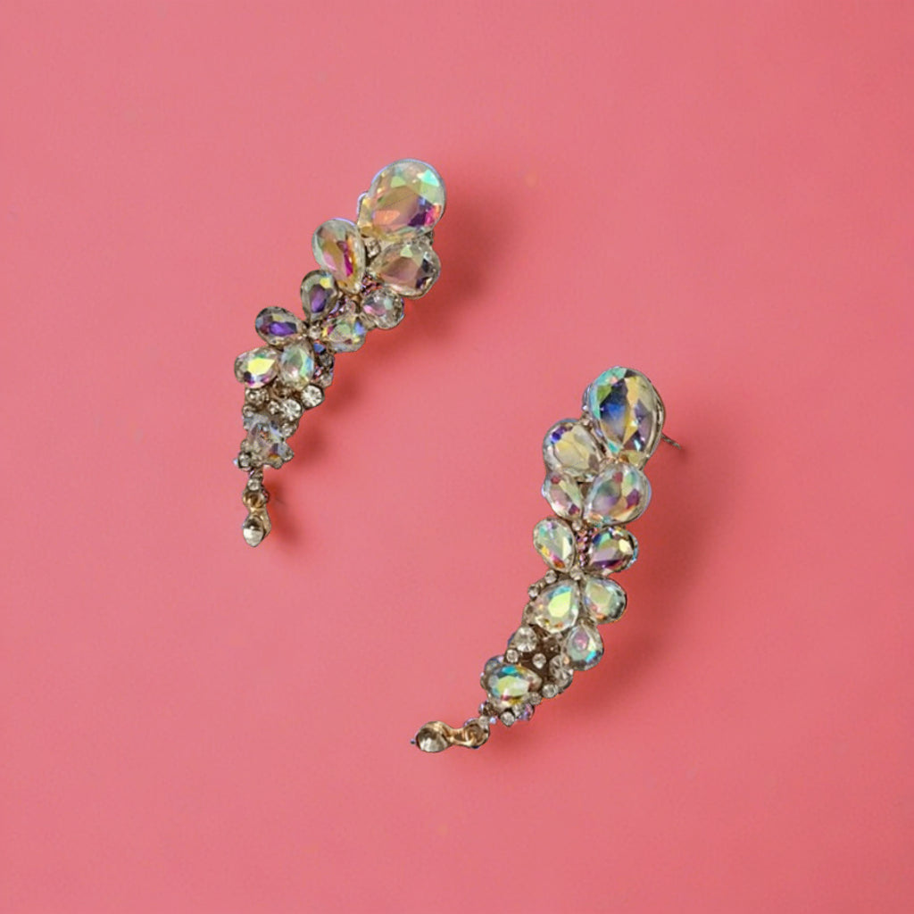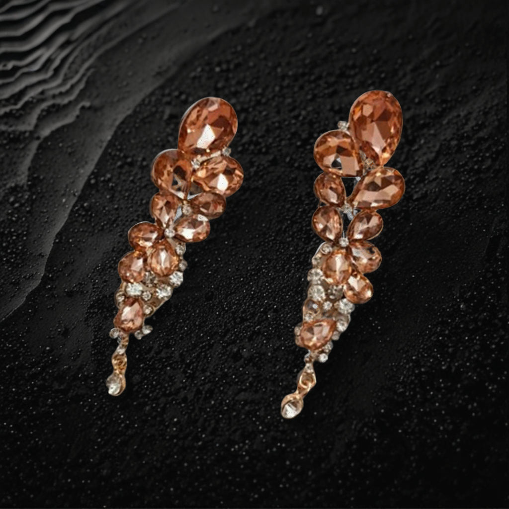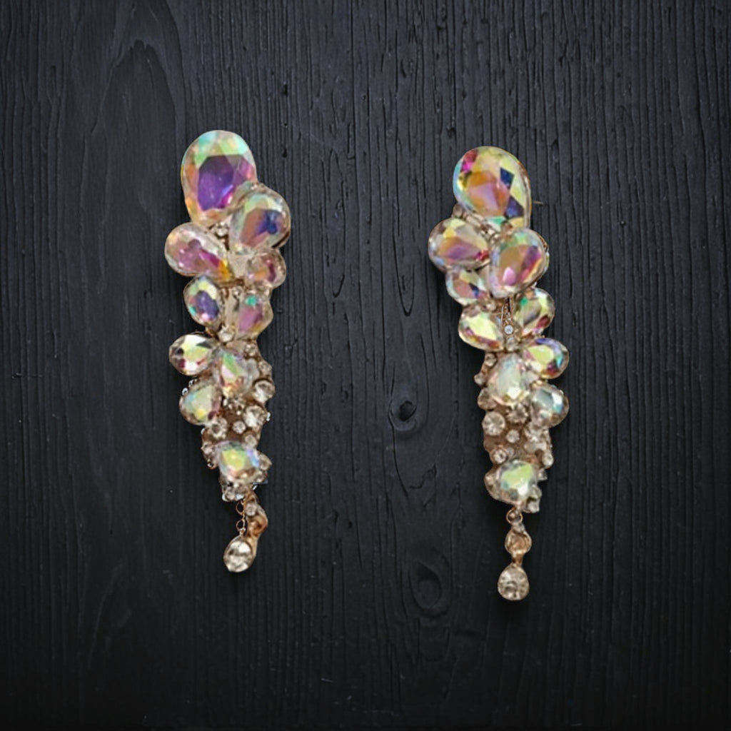 Stunning long chandelier drop design with layered cluster arrangement. Perfect for adding glamour and elegance to your jewelry collection. Ideal for festive wear, party events, and special celebrations.