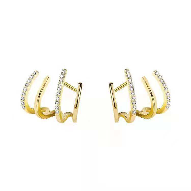Sleek and modern, the Dual Sparkle Crystal Huggie Hoop Earrings feature a chic layered design with a smooth gold-tone curve paired alongside a pavé crystal-lined hoop. The close-fitting huggie silhouette hugs the ear comfortably, creating a refined stacked look with just one piercing. Subtle yet eye-catching, these earrings add effortless sparkle to everyday outfits while remaining elegant enough for evening wear. Perfect for minimalists who love a touch of shine, they’re a versatile essential for a polished, contemporary jewelry collection.