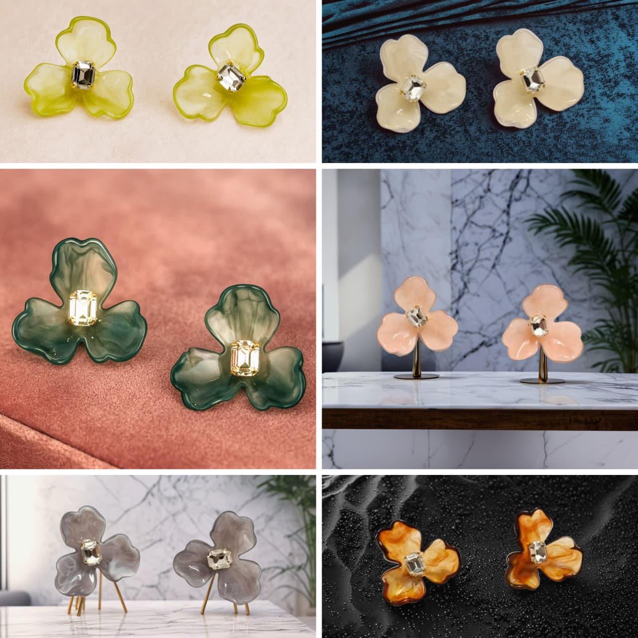 Bring a touch of nature-inspired beauty to your look with these floral stud earrings. Designed with delicate flower petals and a sparkling centerpiece, these earrings are perfect for daily wear, parties, festive occasions, and gifting.