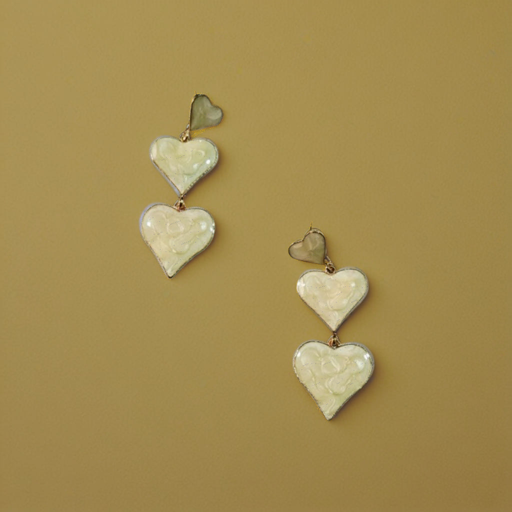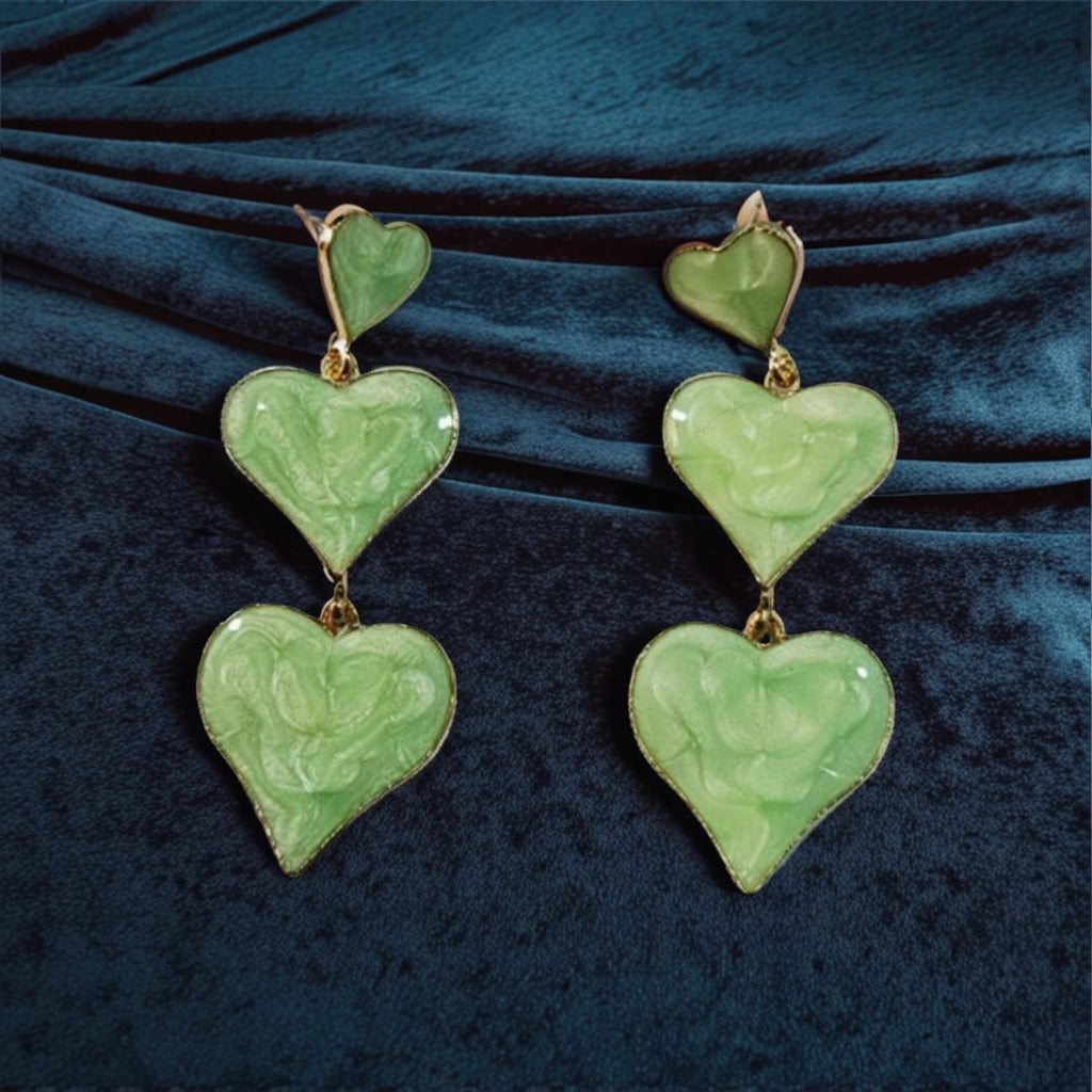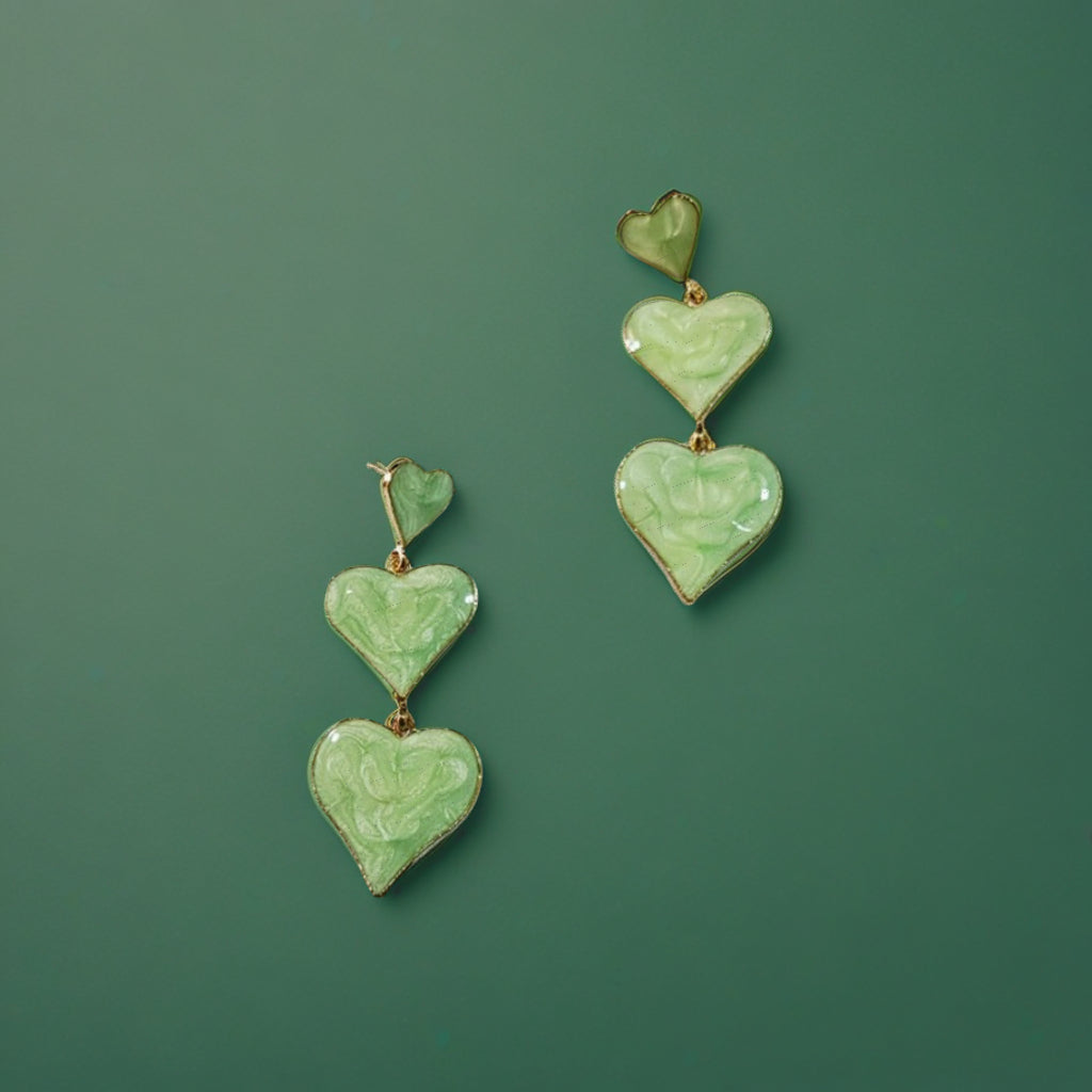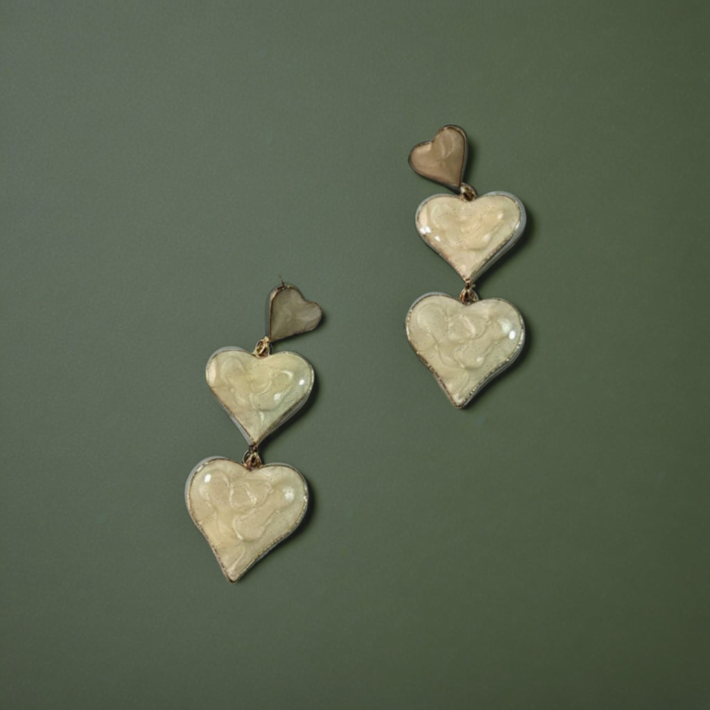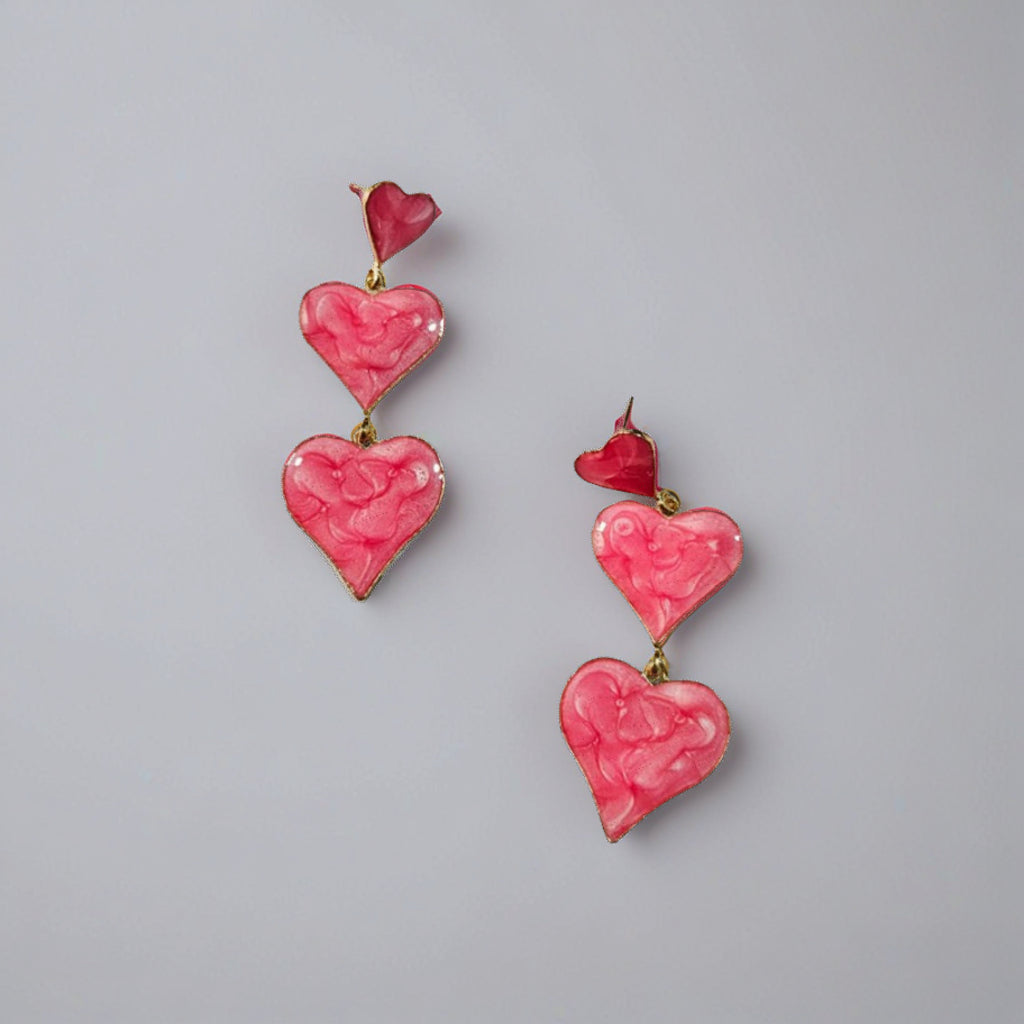 Fall in love with timeless elegance through these beautifully crafted triple-heart drop earrings. Designed with cascading heart motifs, each pair features glossy, marbled enamel hearts framed in a delicate gold-tone outline. The graceful drop silhouette adds movement and charm, making these earrings a perfect blend of romance and modern style. Lightweight and comfortable, they are ideal for both everyday wear and special occasions. Available in multiple elegant color variants to suit every mood and outfit, these earrings make a thoughtful gift and a standout addition to any jewelry collection.