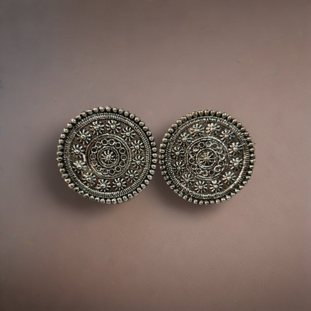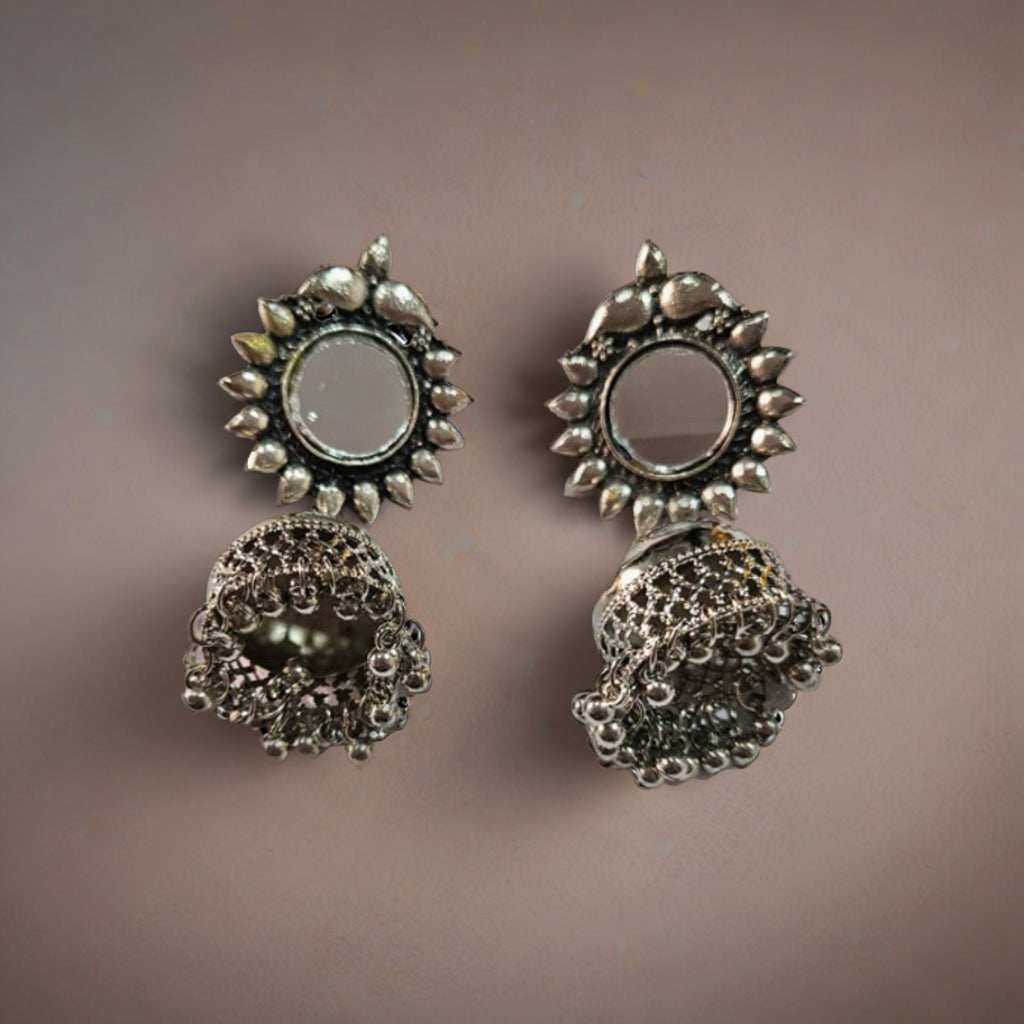 Discover the charm of traditional artistry with our Oxidised Antique Boho Earrings Collection, a beautifully curated assortment of unique, handcrafted designs. This collection includes Musafir-inspired studs, mirror jhumkas, round chakra studs, bird-themed danglers, and rooster-shaped earrings—each piece crafted with intricate detailing and antique finishing. Designed for women who love to experiment with ethnic and bohemian fashion, these earrings add a statement touch to every outfit. Whether paired with kurtis, sarees, Indo-western wear, or casual attire, they instantly elevate your style with their rustic elegance. Made from high-quality alloy with oxidised silver polish, the earrings are lightweight, skin-friendly, and comfortable for long wear. The stunning craftsmanship reflects India’s rich cultural heritage, making this collection perfect for festivals, office wear, gifting, and everyday styling. Add this versatile jewellery set to your collection to enjoy a mix of tradition, uniqueness, and modern charm—all in one beautiful packag