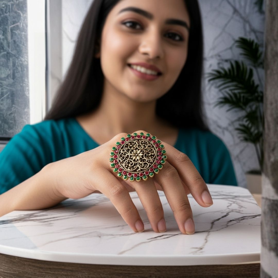 Red & green stone detailing for a royal ethnic look