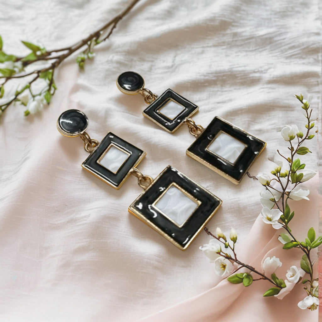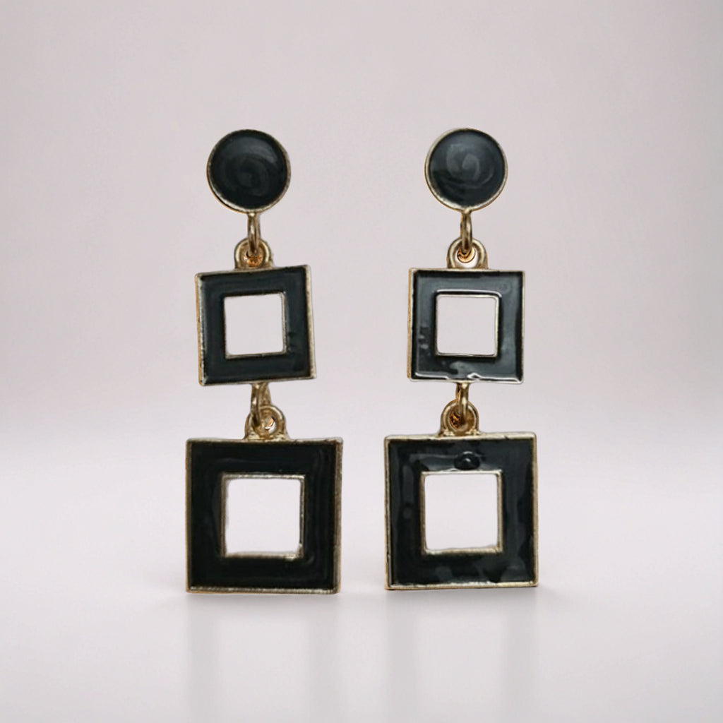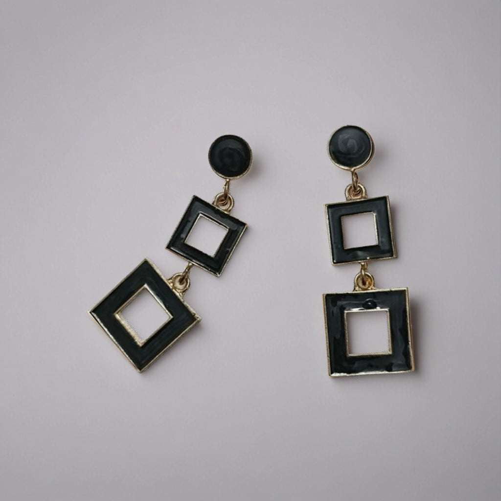 Add a bold and modern touch to your look with these geometric square drop earrings. Designed with a chic double-square pattern, these statement earrings are perfect for parties, festive occasions, or casual outings.