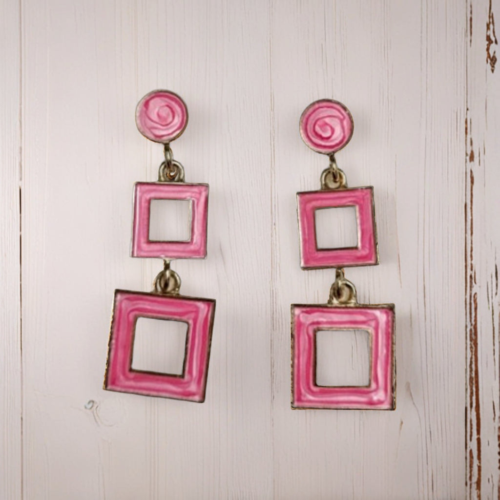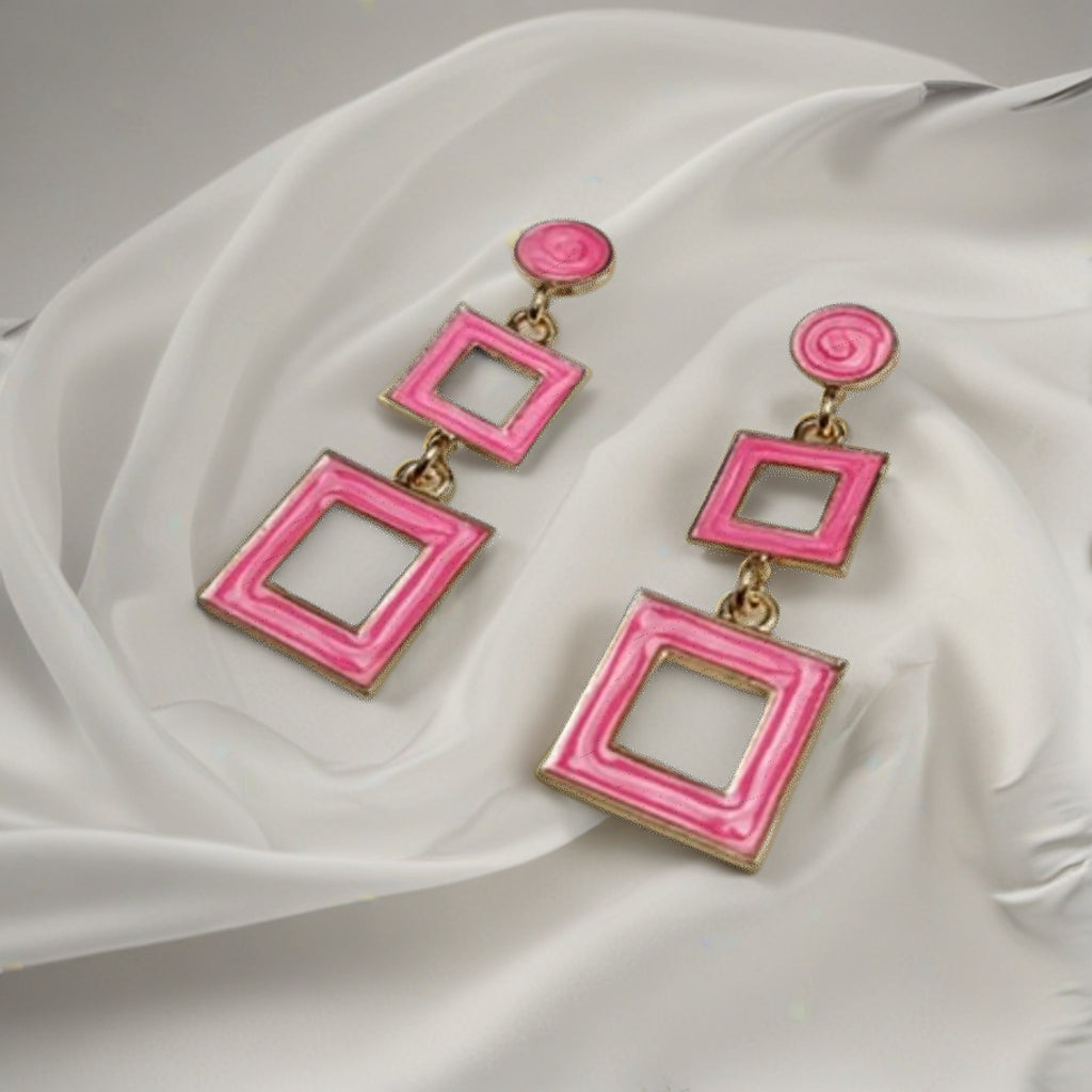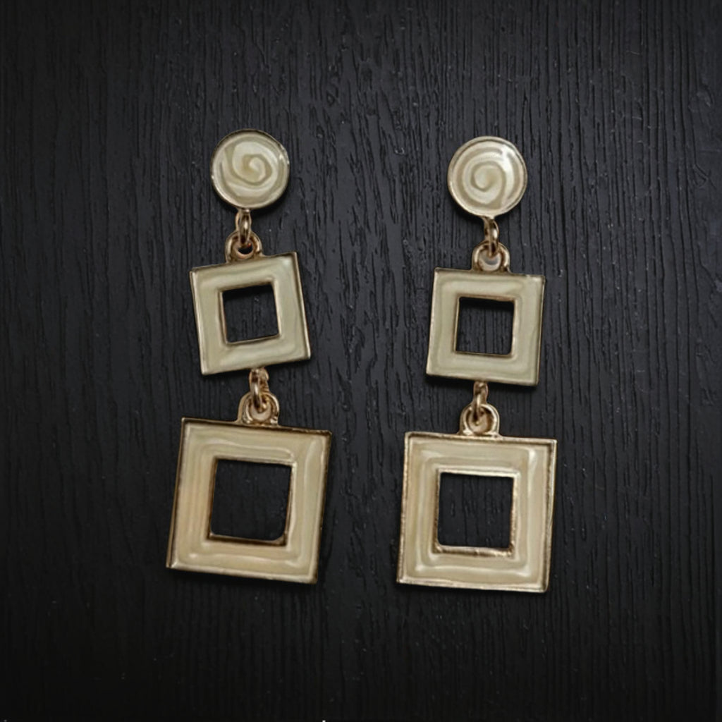 Add a bold and modern touch to your look with these geometric square drop earrings. Designed with a chic double-square pattern, these statement earrings are perfect for parties, festive occasions, or casual outings.